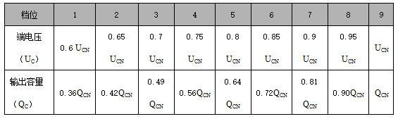 SVQR各檔位下電容器端電壓和無(wú)功出力表